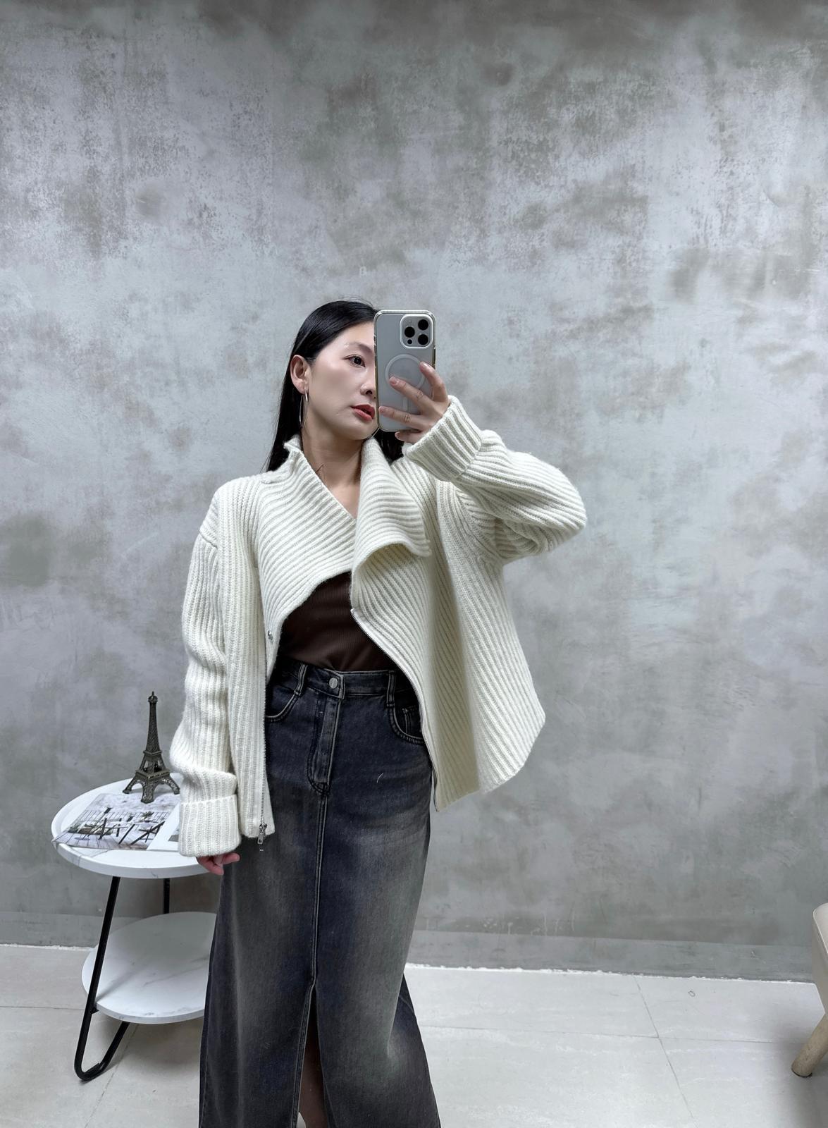 H12 側拉鏈反領羊毛外套