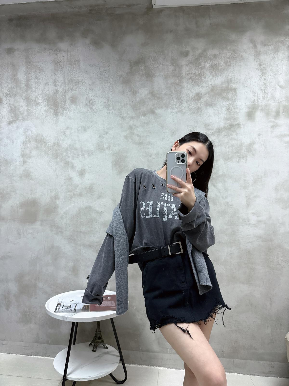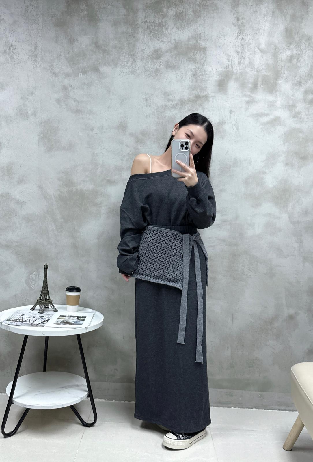 H07 單邊露膊衛衣+半裙Set