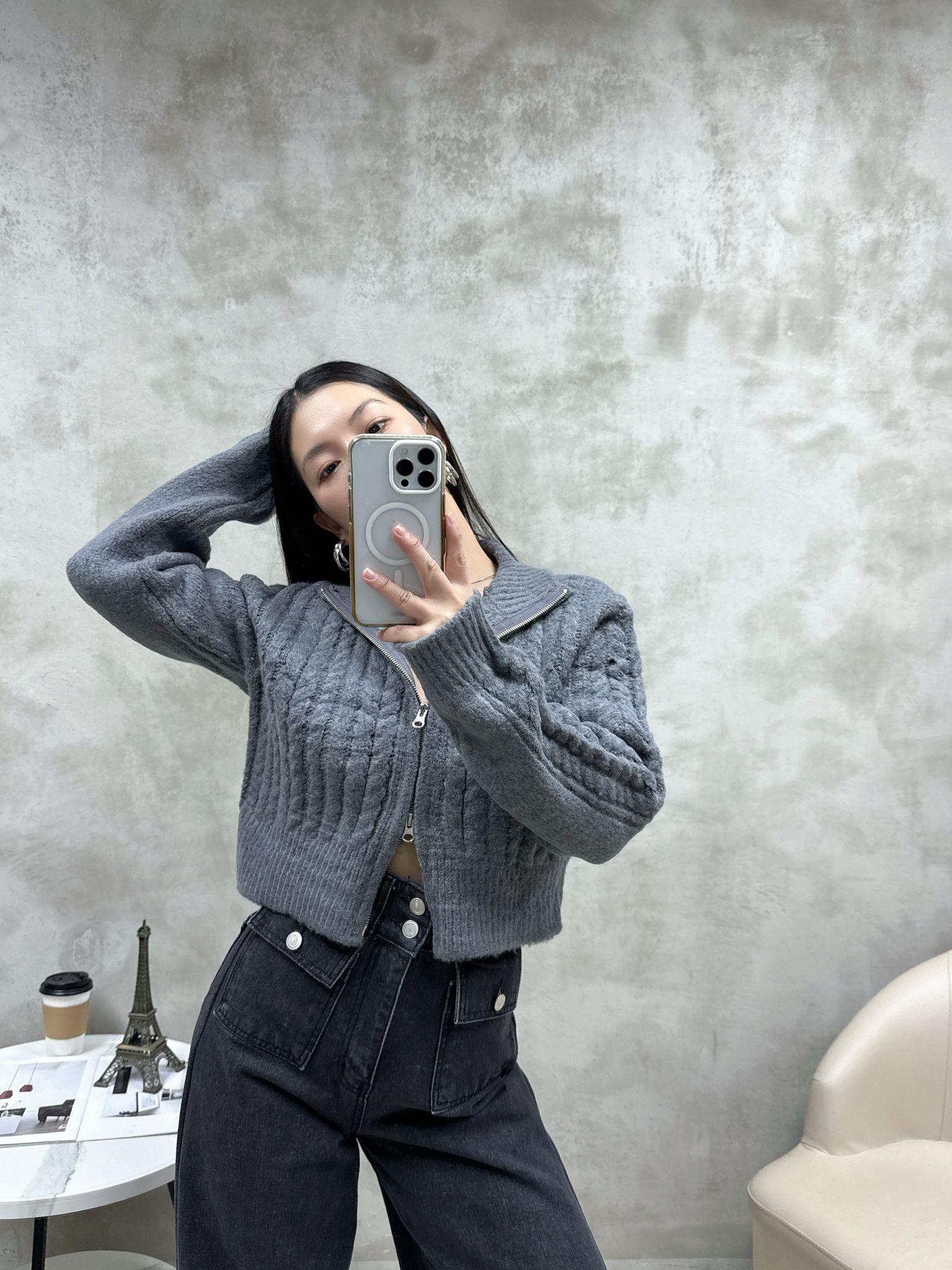 M13 扭紋拉鍊短外套