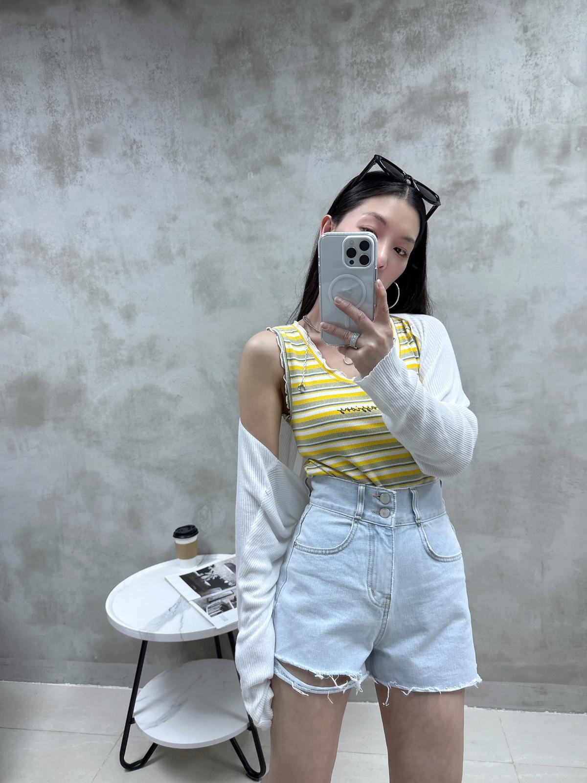 J20 雙鈕介爛牛仔短褲